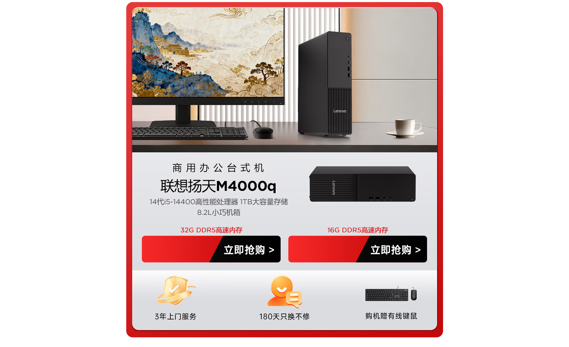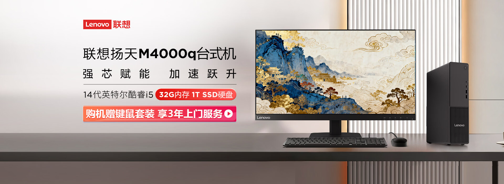 联想扬天M4000q 商用办公台式电脑台式机主机(14代i5-14400 16G DDR5 1TB)23.8英寸全套 国家补贴