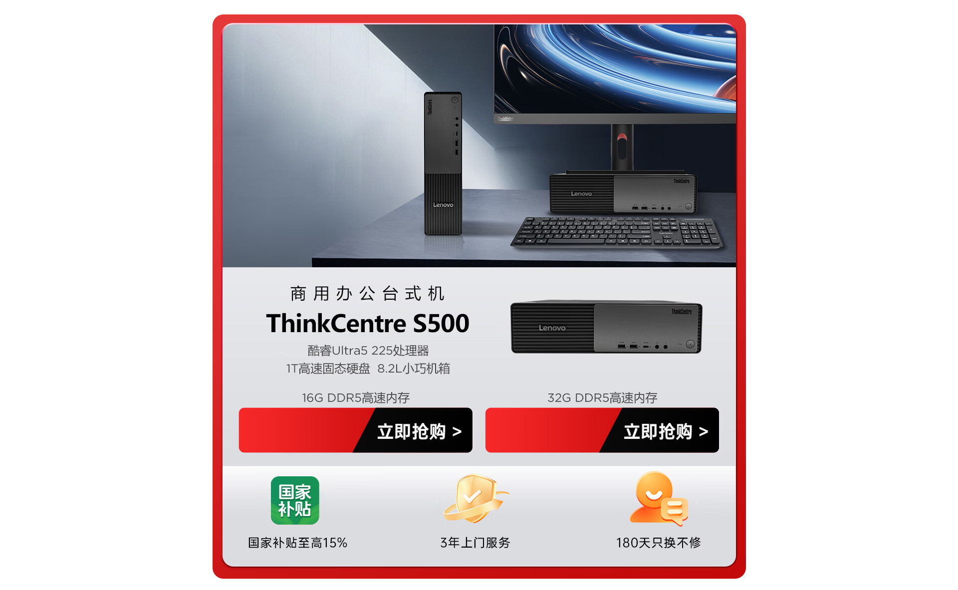 联想瑞天500 商用办公台式电脑台式机主机(酷睿13代i5-13450HX 16G 1TB SSD win11)国家补贴